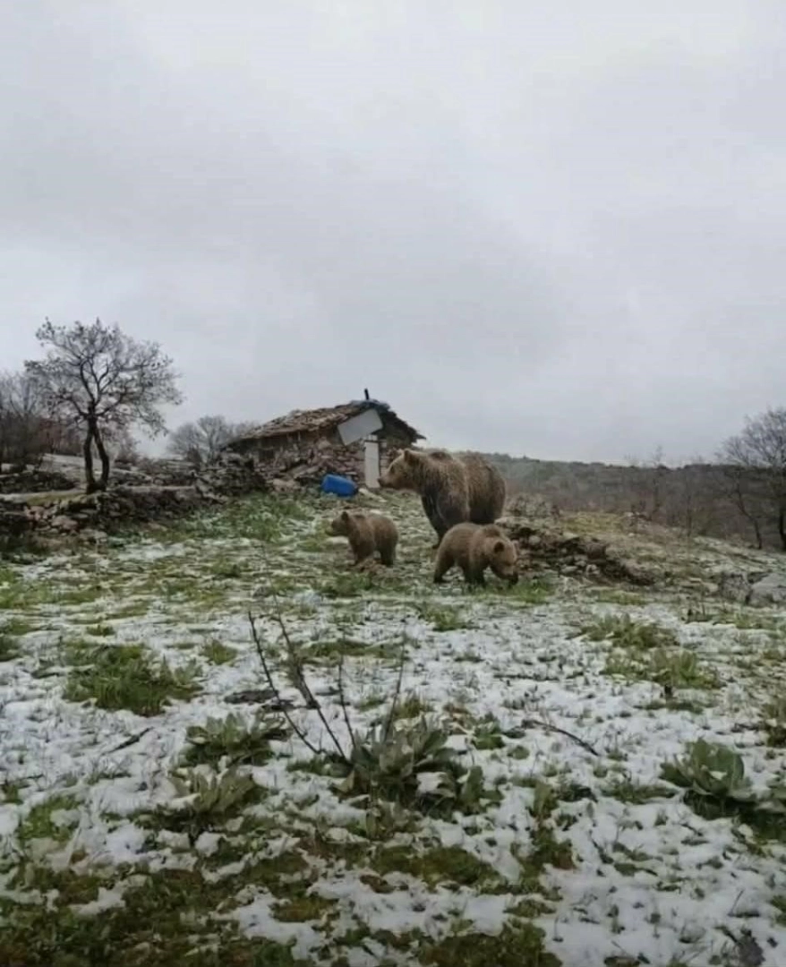 Hava sıcaklıklarının artmasıyla birlikte ayılar kış uykusundan uyanmaya başladı. Çevrede yer yer kar birikintileri olmasına rağmen mağaralardan çıkan ayılar enerji ihtiyaçlarını karşılamak için besin ararken, Kütahya’nın merkez ilçesine bağlı Kolbuca Köyü’nde 2’si yavru toplam 3 ayı yaylaya indi. Köpekler için konulan yiyecekleri arayan ayılar, köy sakini Ahmet Özbilen tarafından fotoğraflandı. Ayıları görünce büyük bir korku yaşadığını söyleyen Özbilen, çevre sakinlerinin dikkatli olması gerektiğini ifade etti.