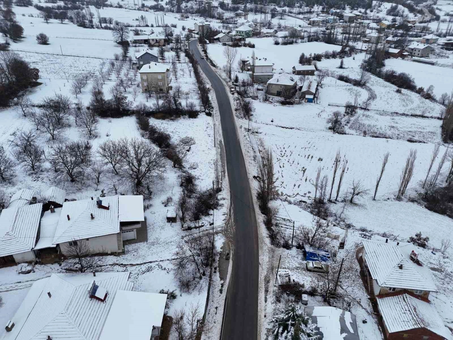 Öte yandan kar yağışının etkili olduğu bölgeler dron ile havadan görüntülendi.