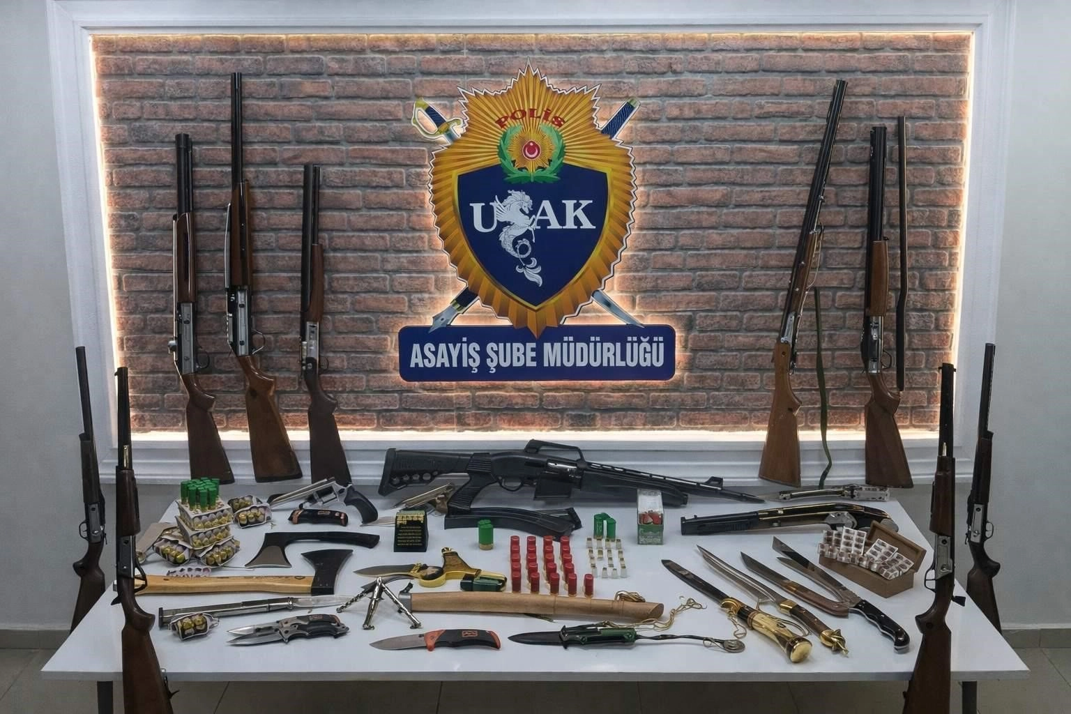 Uşak’ta polis ekiplerince Fevzi Çakmak Mahallesi’nde bulunan Galericiler Sitesi’nde yapılan asayiş denetimlerinde çok sayıda silah, mühimmat ve yasadışı materyal ele geçirilirken 11 kişi hakkında adli ve idari işlem uygulandı.