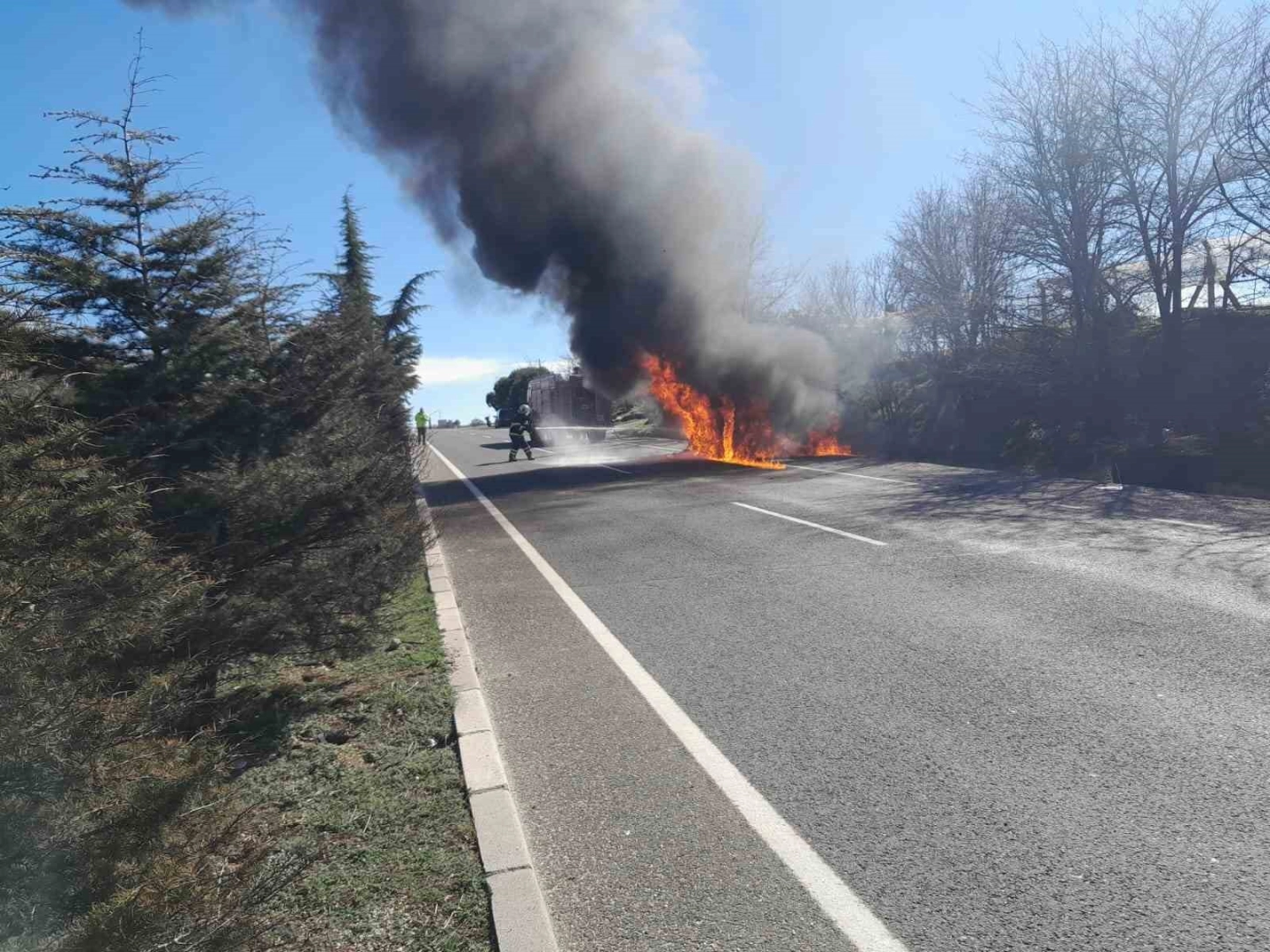 Alevler kısa sürede tüm aracı sararken, çevredeki vatandaşların 112 Acil Çağrı Merkezi’ne yaptığı ihbar üzerine bölgeye itfaiye, polis ve jandarma ekipleri sevk edildi. İtfaiye ekiplerinin müdahalesiyle yangın söndürülürken, cip tamamen yanarak kullanılamaz hale geldi.