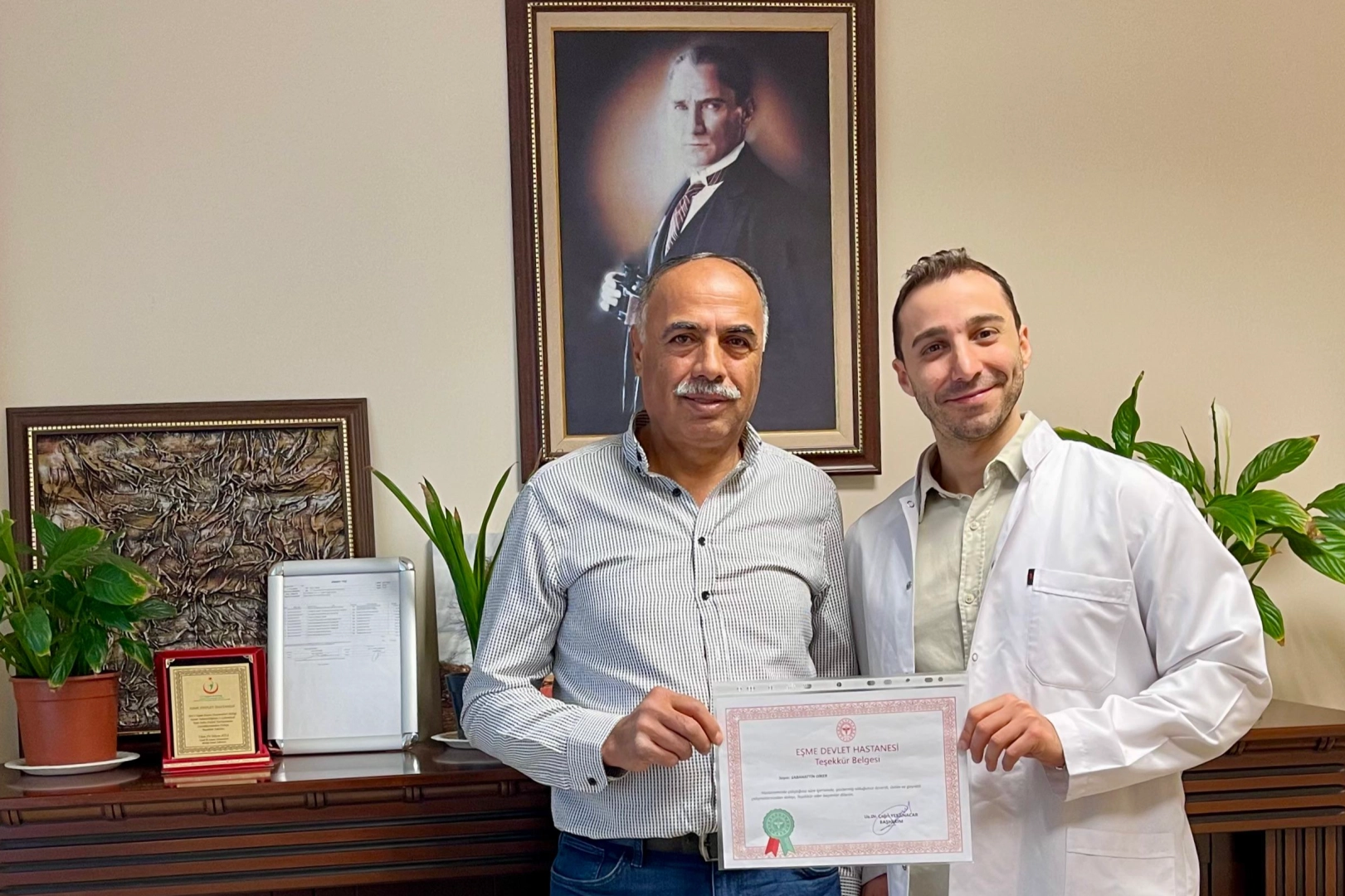 Eşme Devlet Hastanesinde yıllardır görevini özveriyle sürdüren, mesai disiplinine gösterdiği hassasiyet ve başarılı çalışmalarıyla örnek olan personellere, Başhekim Uzm. Dr. Çağrı Yeşilnacar tarafından Teşekkür Belgesi takdim edilmiştir.