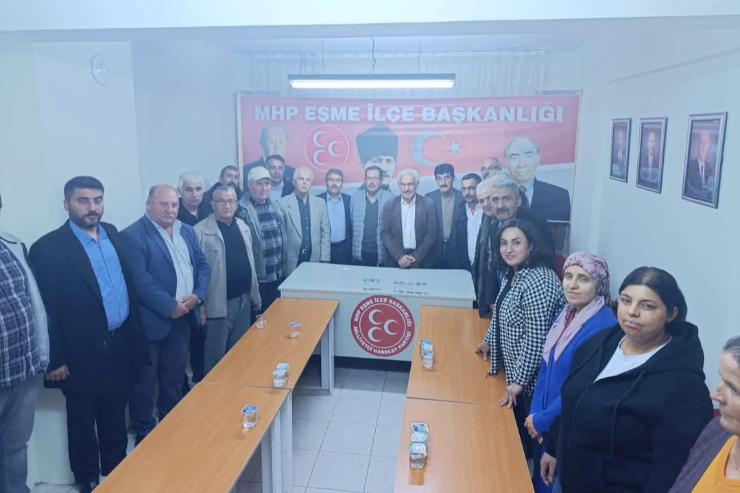 MHP Uşak İl Başkanlığı MHP Eşme İlçe Başkanlığını ziyaret etti. Ziyaret ile alakalı MHP Eşme İlçe Başkanlığı " Nazik Ziyaretleriyle Bizleri Onurlandıran MHP Uşak İl Başkanlığı'mıza teşekkür eder çalışmalarında başarılar dilerim ayaklarınıza sağlık" ifadelerini kullandılar.