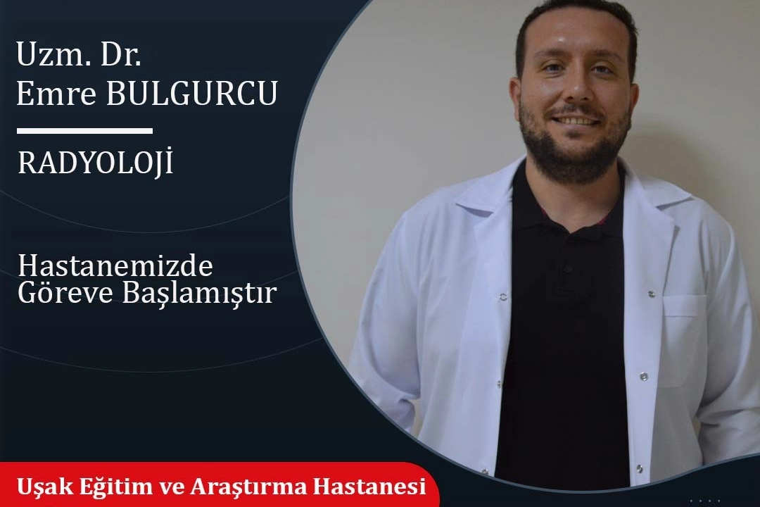 Radyoloji Hekimi Uzm. Dr. Emre BULGURCU 2018 yılında Akdeniz Üniversitesi Tıp Fakültesinden mezun olmuştur.2018-2023 yılları arasında Pamukkale Üniversitesinde radyoloji ihtisasını tamamlamıştır.2023-2025 yılları arasında Denizli Devlet Hastanesinde mecburi hizmetini tamamlamıştır. 2025 kasım ayı itibariyle Uşak Eğitim ve Araştırma Hastanesinde göreve başlamıştır.