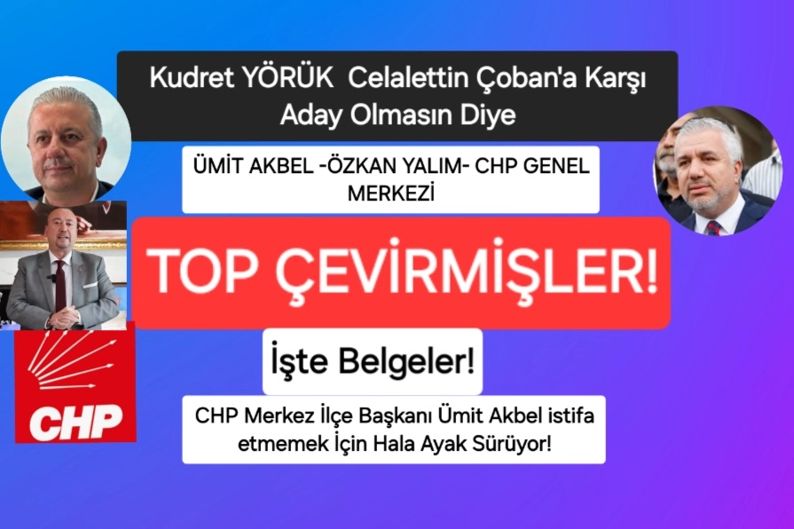CHP Uşak Merkez İlçe Başkanı Ümit Akbel, Uşak Belediyesi tutuklu eski Başkanı Özkan Yalım ve CHP Genel Merkezi CHP Uşak 39. Olağan Kongresinde Kudret Yörük Celallettin Çoban'a karşı aday olmasın diye üyelik talebini gerçekleştirmemek için kendi aralarında top çevirmişler.