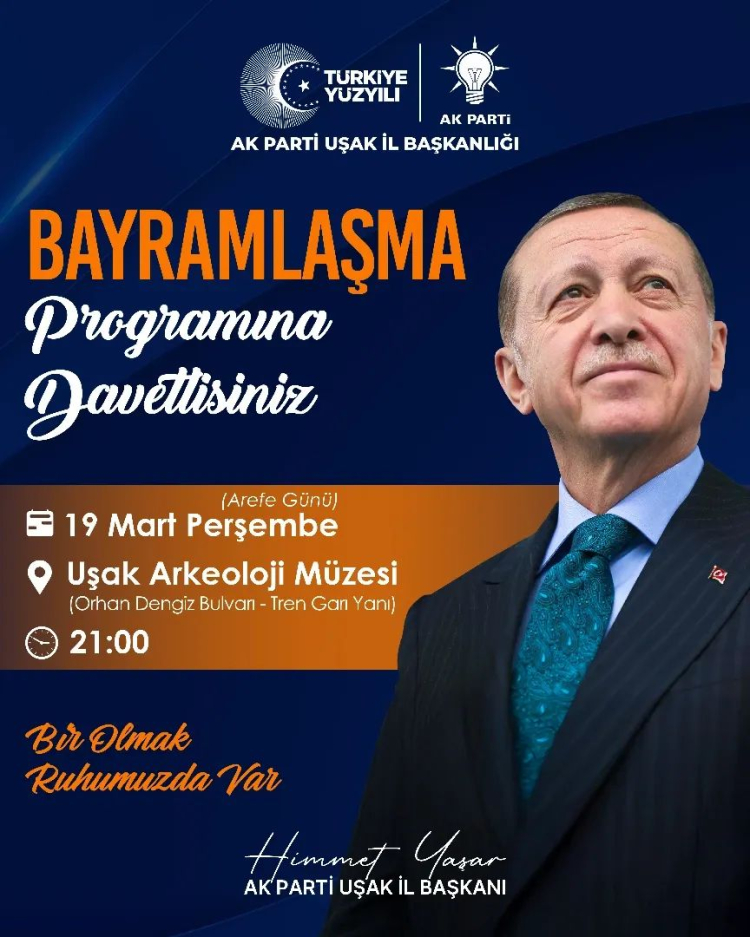 Uşak Arkeoloji Müzesinde buğün 19 mart 2026 perşembe günü akşam 21.00 de yapılan bayramlaşmaya çok sayıda Partili ve vatandaş kişi katıldı.