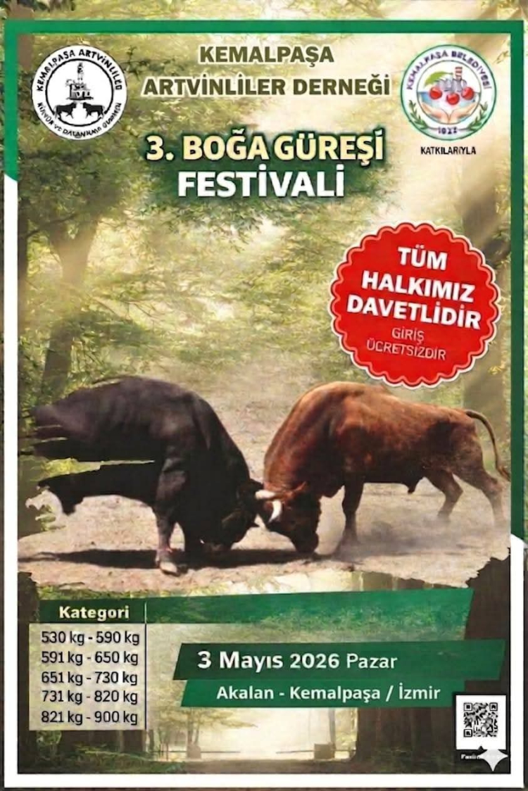 İzmir’in Kemalpaşa İlçesinde bulunan, Kemalpaşa Artvinliler Derneği’nce düzenlenen 3. Boğa Güreşi Festivalinin 3 Mayıs’ta Akalan Arena Kemalpaşa’da