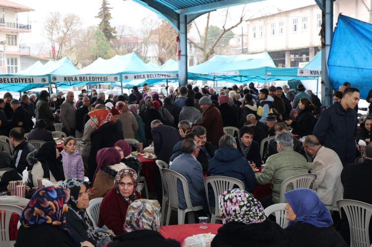 Yağışlı havaya rağmen çok büyük katılımın olduğu programda katılımcılara çorba, keşkek, tas kebabı, pirinç pilavı, nohut, ayran, turşu ve helva ikram edildi. Kula Belediyesi ekipleri de çocuklara yönelik, yüz boyama,palyaço, mısır ve pamuk şekeri ikram edildi.