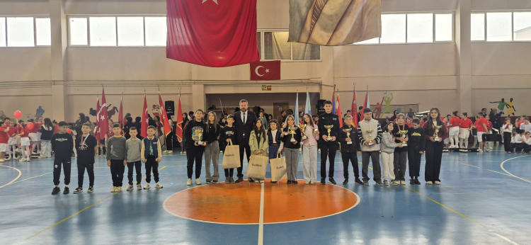 Yağmur altında yapılan çelenk sunumundan sonra Sivaslı Kapalı Spor salonunda yapılan kutlamalarda okul ve öğrenciler hazırladıkları etkinlikleri sergilediler.