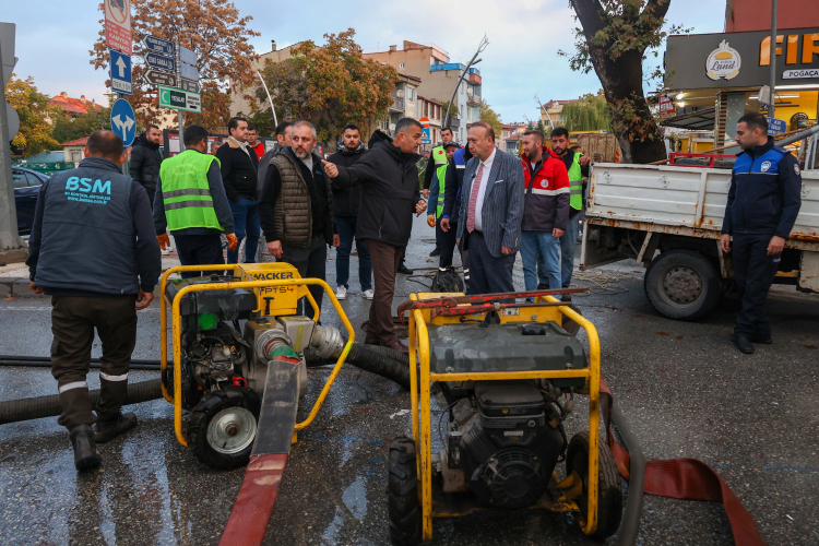Sahaya inerek çalışmaları yerinde takip eden Uşak Belediye Başkanı Özkan Yalım ekiplerden brifing