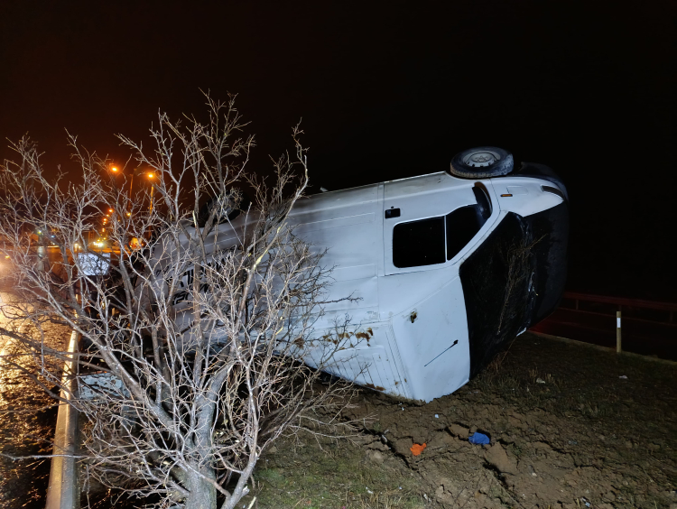 Edinilen bilgilere göre, A.G. idaresindeki 64 FD 151 plakalı minibüs, Banaz Sanayi Sitesi kavşağında yağış nedeniyle kayganlaşan yolda sürücüsünün direksiyon hâkimiyetini kaybetmesi sonucu kontrolden çıkarak takla attı.