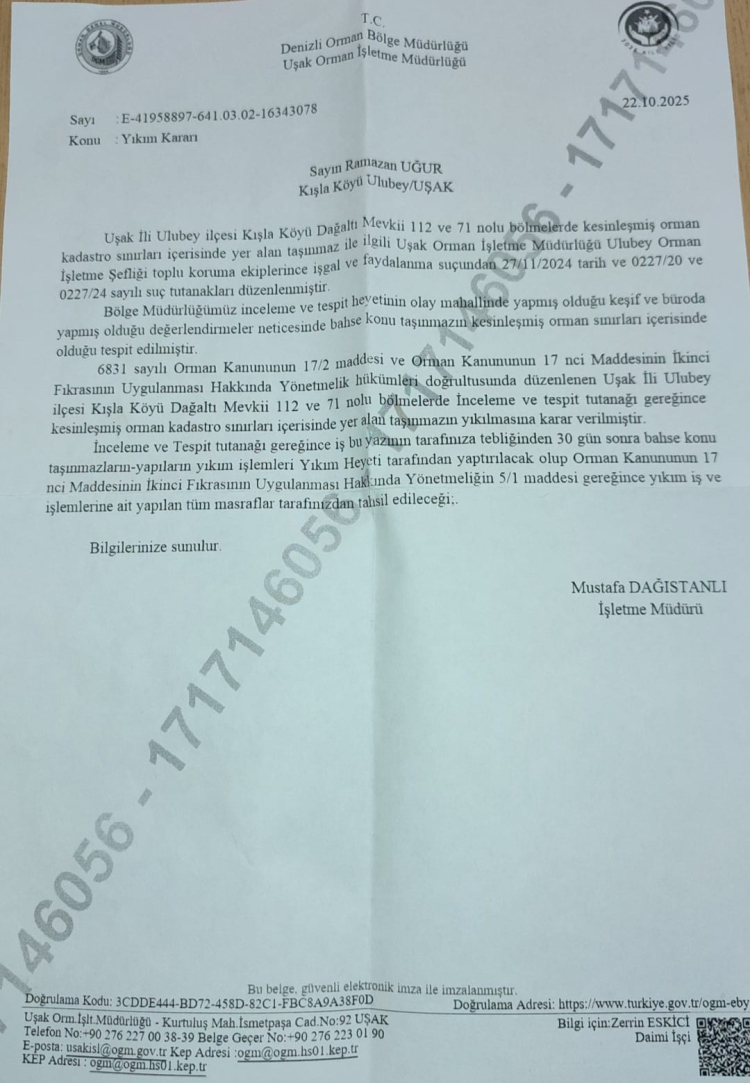 Orman şube müdürlüğünün aldığı yıkım kararında yıkım masraflarını da hayırsever vatandaştan alınacağını yazması vatandaşlardan tarafından duyulan şaşkınlığı arttırdı