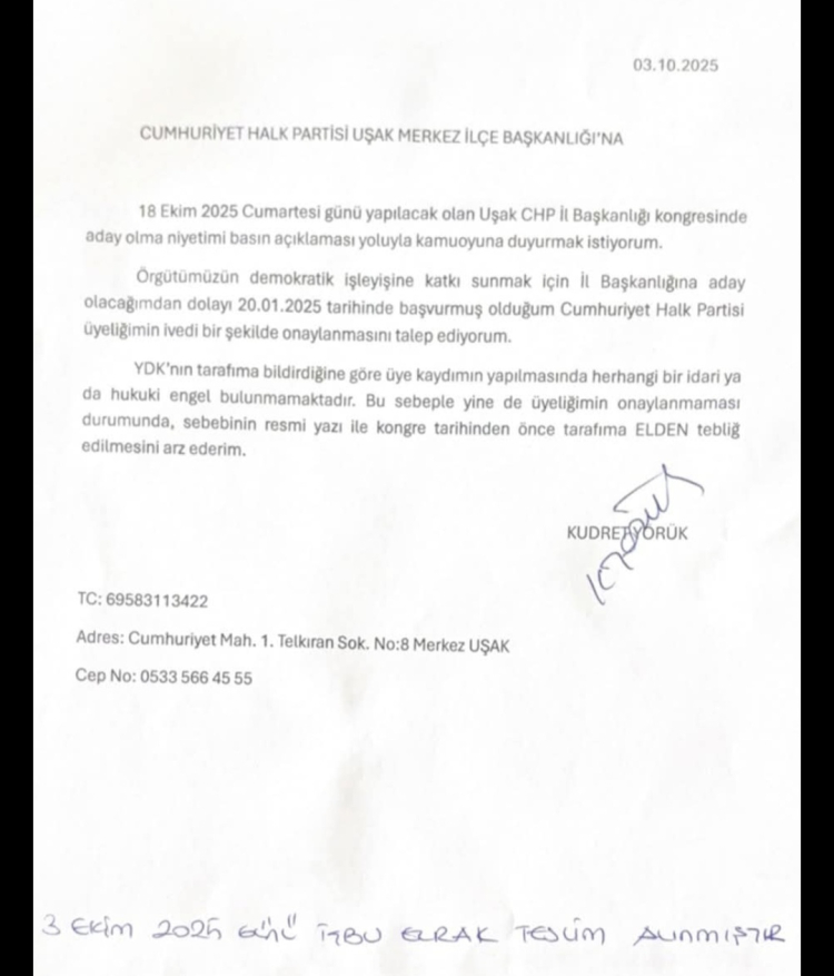 Verdiğim dilekçeden de anlaşılacağı üzere yalım tarafından üyeliğim ve adaylığım ENGELLENMEKTEDİR...