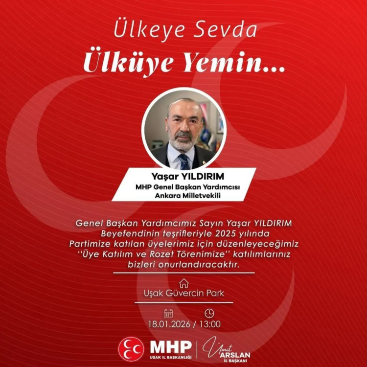 MHP Genel Başkan Yardımcısı ve Ankara Milletvekili Yaşar Yıldırım Uşak'a geliyor.